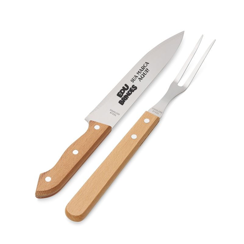 Kit churrasco 2 peças. Contém: garfo e faca, acompanha embalagem de kraft. 07443